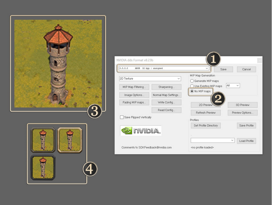 - The icons have to be exported using DXT 8.8.8.8. ARGB 32bpp | unsigned setting